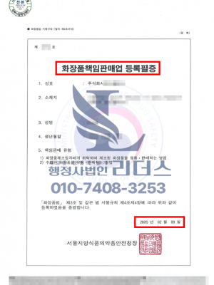26년 02월_주식회사 화장품책임판매업등록증 발급완료