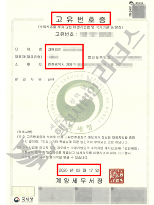 재단법인 고유번호증 발급완료_26년 03월
