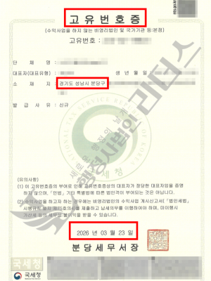 법인으로 보는 단체(분당구) 고유번호증 발급완료_26년…