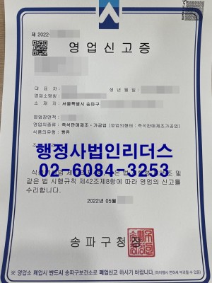 22년 05월_즉석판매제조가공업 영업신고완료(송파구청)