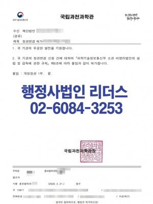 23년 02월_재단법인 정관변경허가완료(과학기술정보통신…