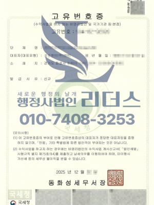 25년 12월_법인으로 보는 단체 고유번호증 발급완료