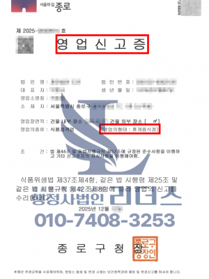 25년 12월_휴게음식점업영업신고증 발급완료