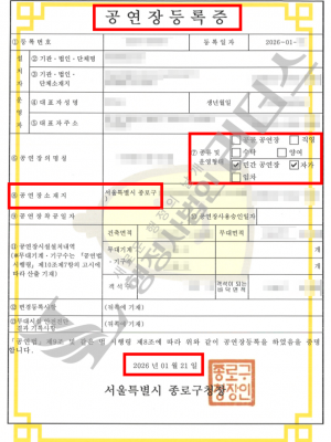 26년 01월_종로구 공연장 등록 완료