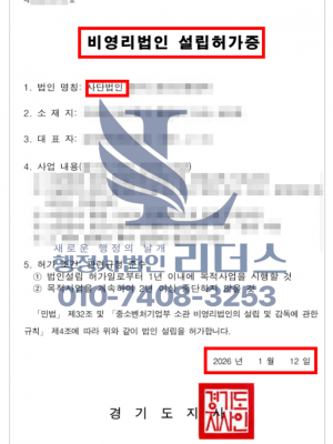 26년 01월_사단법인설립 허가증 발급 완료