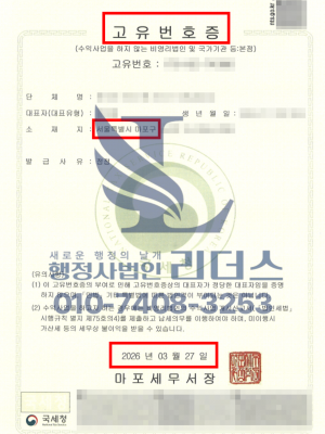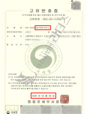 재단법인 고유번호증 발급완료_26년 03월