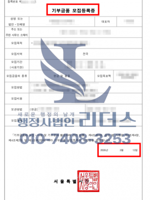 26년 03월_기부금품 모집등록증 발급 완료