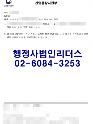 22년 07월_사단법인 정관변경 허가완료(산업통상자원부…